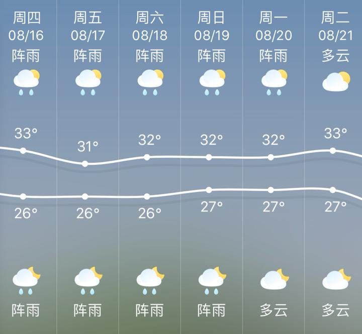 今天早晨最低溫度:全省25-27℃。明天最高溫度:浙北地區(qū)30-32℃;其它地區(qū)32-34℃。 (見習(xí)記者 來逸晨 設(shè)計(jì) 張?jiān)?)