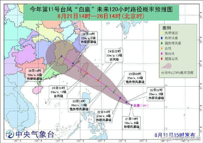 22日8時(shí),第11號臺風(fēng)“白鹿”中心位于臺灣省花蓮市東南方向約1230公里。預(yù)計(jì)將以每小時(shí)18公里左右的速度向西北方向移動,逐漸向臺灣東部沿海靠近。