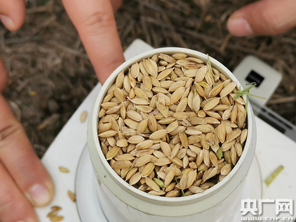 根據《浙江省水稻測產驗收辦法》,專家組對該田塊采用收割機全田實割測產。實割面積為1.005畝,濕谷總產為1217.48公斤,采用種子標準法測定水分和凈度,折成標準水分(14.5%)后,測得干凈的干谷畝產為1106.39公斤,打破該田塊在2017年創(chuàng)造的1071.51公斤/畝的紀錄,成為浙江單季晚稻最高畝產的新坐標。