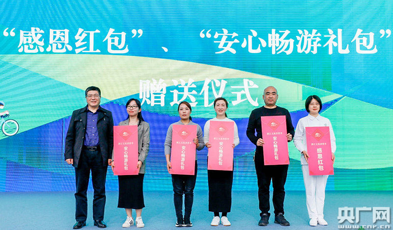 浙江省委常委、宣傳部長朱國賢出席活動并宣布浙江文旅消費季正式啟動,浙江省副省長成岳沖為醫(yī)護人員和游客代表發(fā)放禮品,浙江省委宣傳部副部長葛學(xué)斌出席活動。