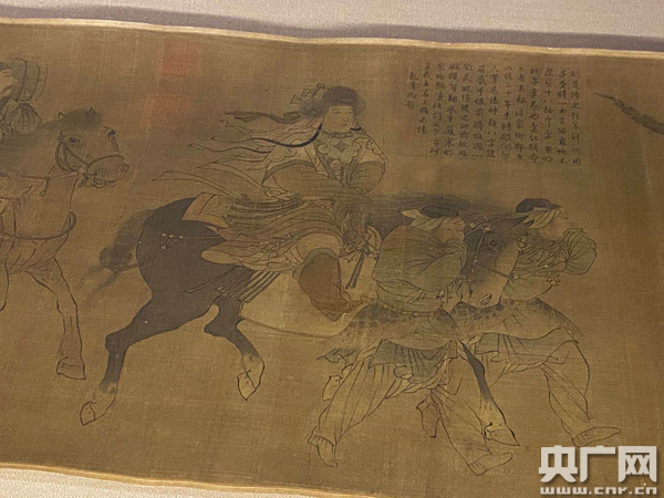 吉林省博物院副研究館員王舒羽介紹到,這幅畫為金代畫家張瑀所作,畫工精美,畫卷中還有乾隆皇帝的題詩!敖鸪鱾飨聛淼淖髌繁緛砭吞貏e少,這樣精彩的畫作就更為難得了。這幅畫畫作精美,從畫中每個人的神態(tài)就能感受到途中風(fēng)沙很大,蔡文姬頭上戴的帽子甚至能看出貂毛的質(zhì)感!